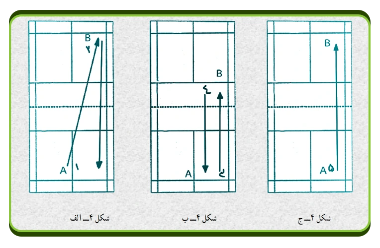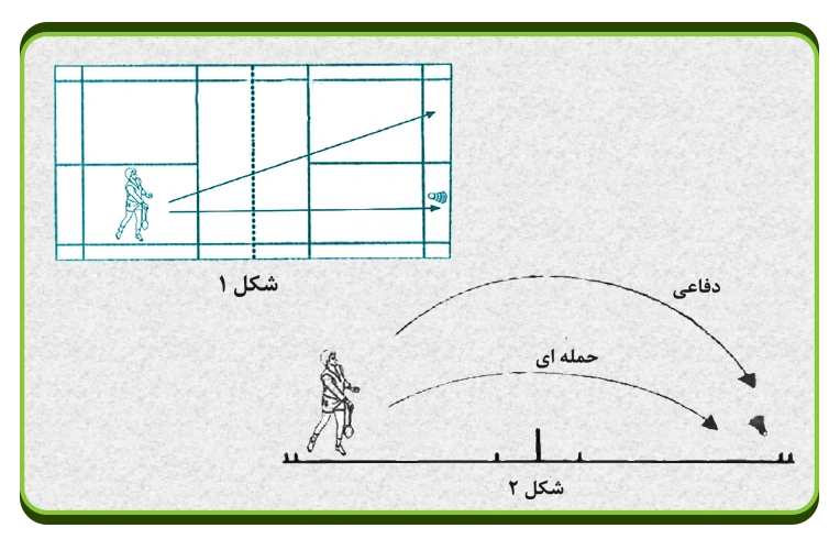 با علامت شماره 2 معلم دستی که راکت دارد به طرف جلو حرکت کرده و توپ را به طور فرضی (سایه زنی) می زند ( شکل20 ) این تمرین چندین بار باید تکرار شود.
