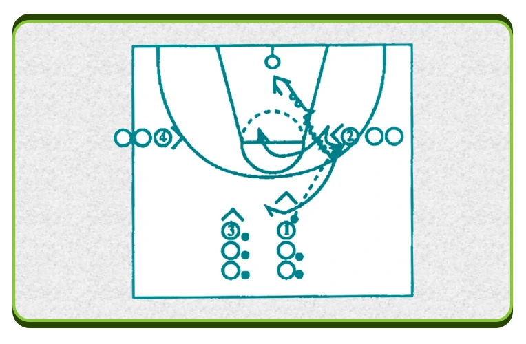 تمرین: دانش آموزان را در گروه های 1 تا 4 نفری به عنوان مهاجمان مانند شکل مستقر کنید. گروه های فرد که توپ دارند درحالی که یک مدافع با دفاع نزدیک از آنها دفاع می کند، پس از ارسال پاس و انجام گول به سمت مخالف، به سمت ستون زوج رفته و از سمت راست یا چپ مدافع او را سد می کند تا مهاجم ستون زوج با استفاده از سد به سمت حلقه نفوذ کند.مهاجم سدکننده، پس از عبور مهاجم آزادشونده، چرخش کرده و در موقعیت دریافت پاس یا ریباند مجدد قرار می گیرد.