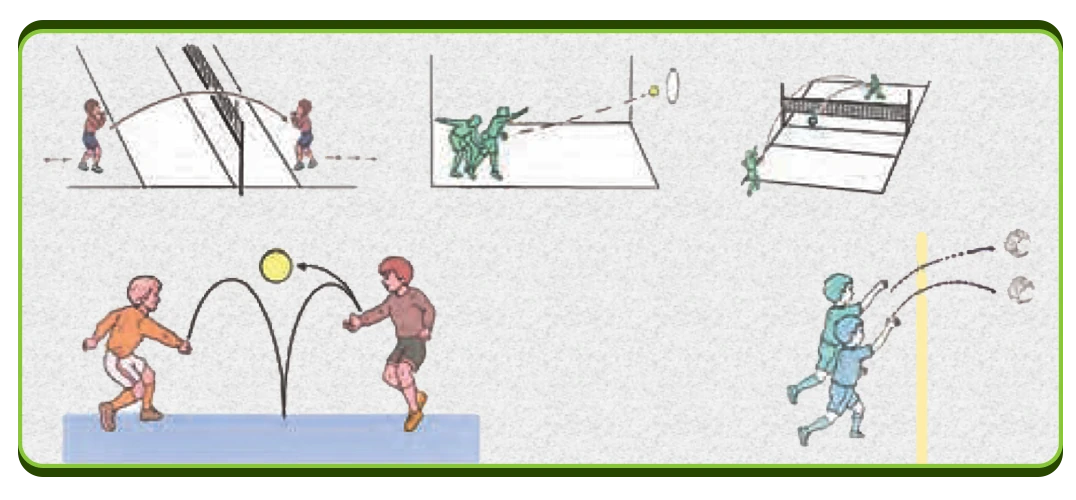 نمونه بازی های رقابتی در والیبال هدف: هماهنگی در کار گروهی و ترکیب سه مهارت سرویس ساده، دریافت سرویس و پاس. انجام یک بازی ساده والیبال علاوه بر اینکه فرصت بازی با گروه های هم سنّ و سال را برای دانش آموزان فراهم می کند، اجرای مهارت های آموخته شده
