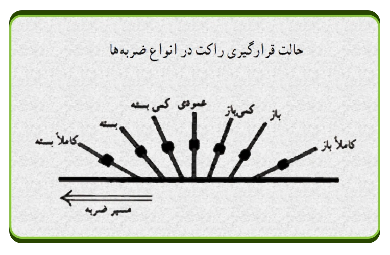حالت قرارگیری راکت در انواع ضربه ها