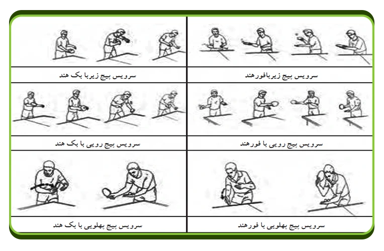 آشنا خواهید شد با… سرویس در تنیس روی میز تعریف : سرویس ضربه شروع بازی است و از فنون مهم و اساسی در تنیس روی میز محسوب می شود. با پرتاب توپ به بالا آغاز و با ضربه به توپ با راکت ادامه می یابد. سرویس خوب سرویسی است که به