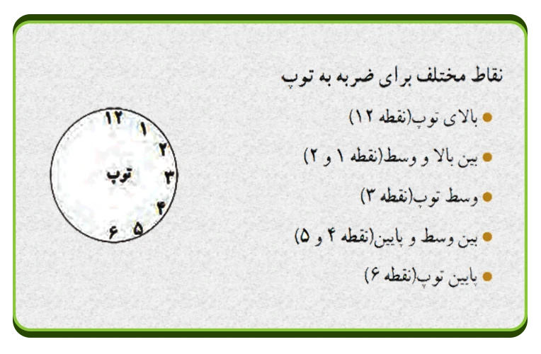نقاط مختلف برای ضربه به توپ
